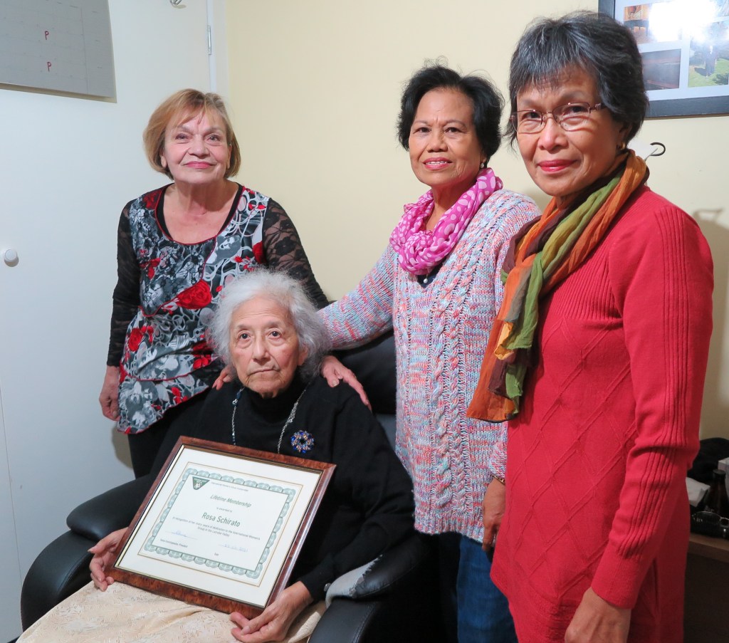 Rosa Schirato was recently presented with life membership of the International Women’s Group for her 25 years of dedication and support. She was the President of the Gippsland International Women’s Group for 8 years from 1998 until 2006 and as such was an active and dynamic force.