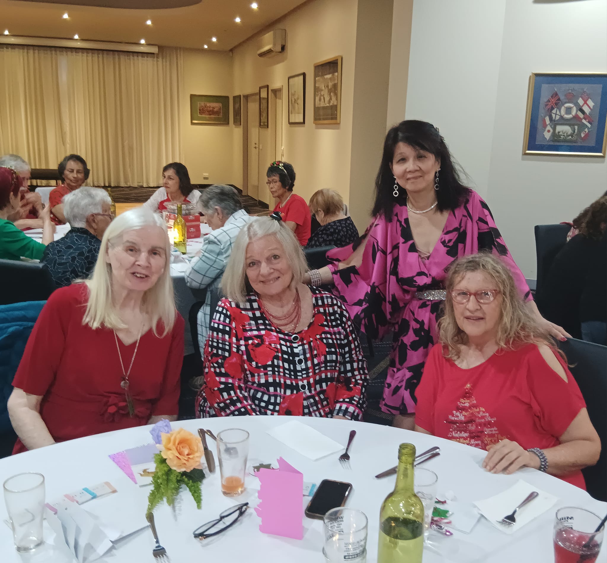 We provide opportunities for women to socialise. Annual social activities are organised which include; International Women’s Day lunch, Mother’s Day lunch, Mid year lunch , trip to art gallery, Seniors week celebration and end of year Christmas lunch. All of these activities we are able to subsidies with money raised in small raffles that are held at our bi-monthly meetings.